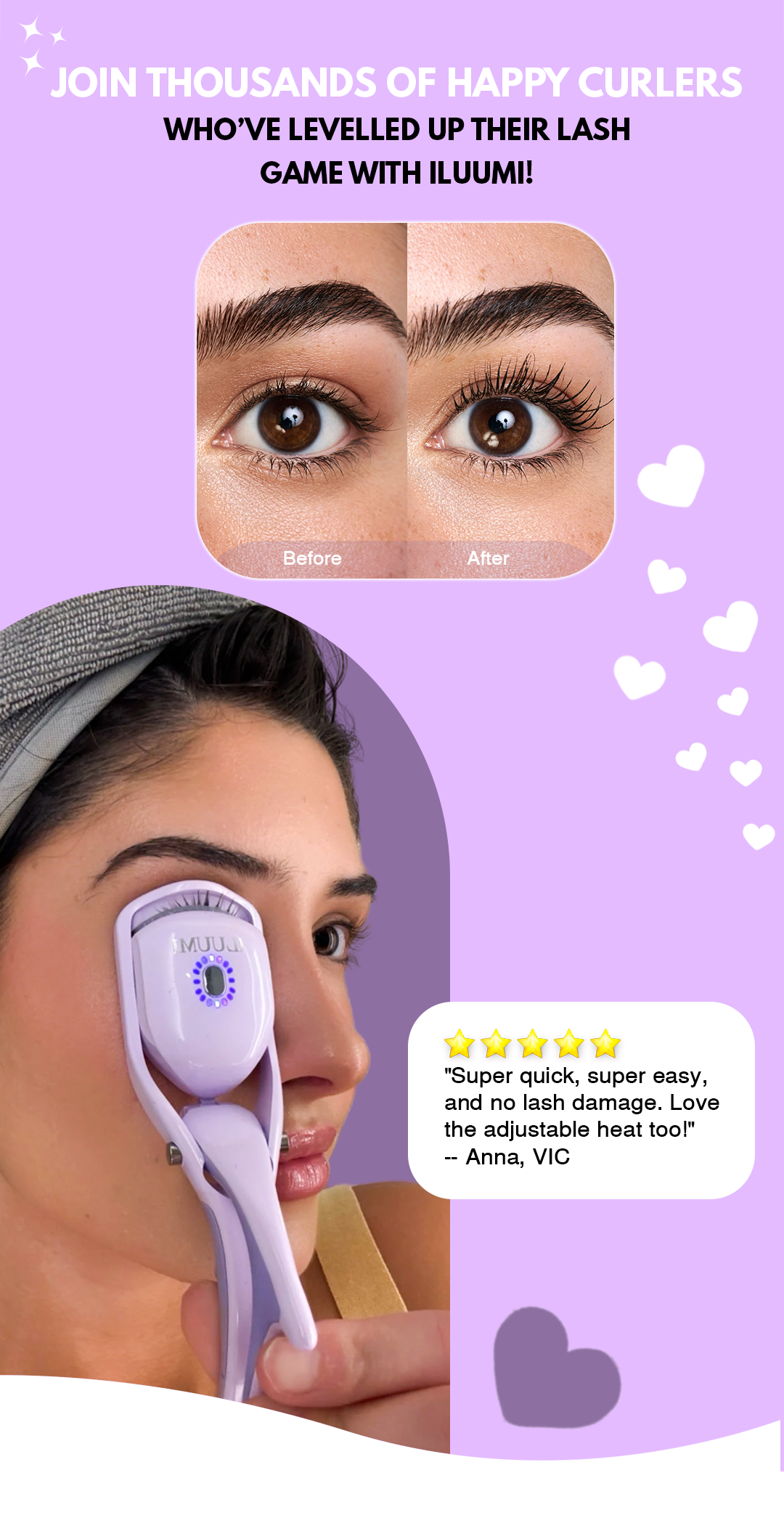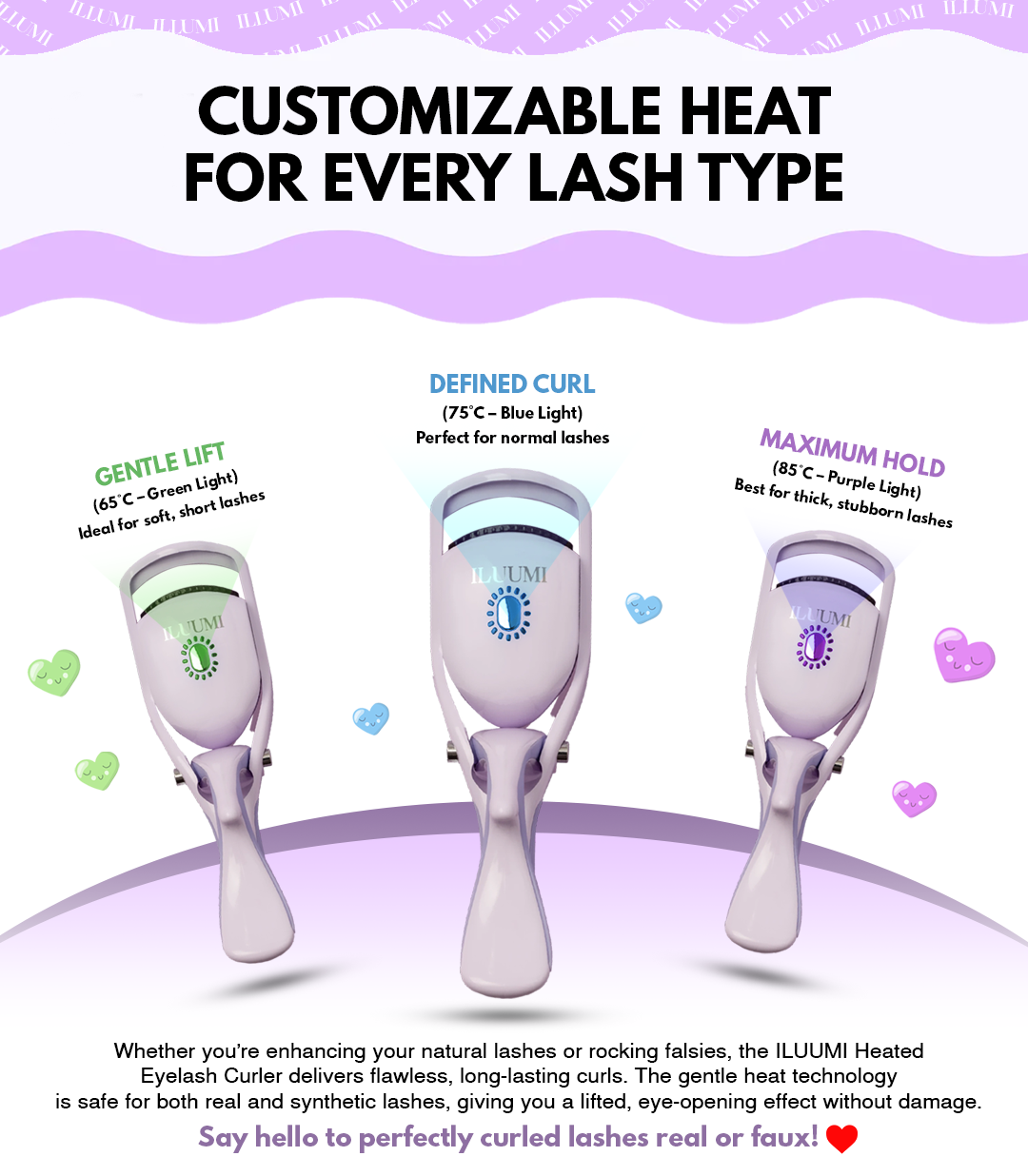 Tired of stubborn, straight lashes that won’t hold a curl? Meet the ILUUMI Heated Eyelash Curler – the secret to beautifully lifted, eye-opening lashes in seconds!